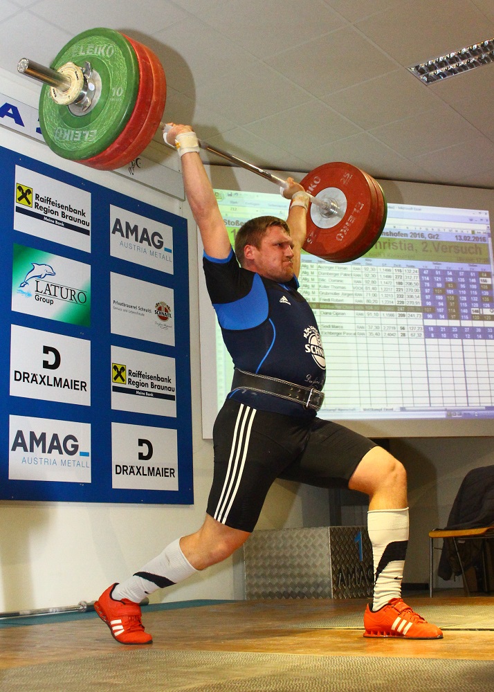 | Bestleistung Gesamt: | Reissen 128kg / Stossen 165kg / Zweikampf 292kg / Sc-Punkte 315,36 / Kat.: +105kg |